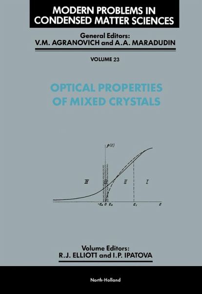``Optical Properties of Mixed Crystals'' is concerned with the description of optical processes in substitutionally disordered semiconductors and insulators which can be basically described through their elementary excitations. Two of the chapters relate to the phonon response including the effect of side bands on electron transitions. Two relate to electronic spectra, one on photoelectron spectroscopy and the other on excitons. A further chapter deals with magnons in magnetic crystals and a final chapter is related to fluctuations and band edge effects.Each chapter deals with a specific class of excitation, but the book makes it clear that the fundamental structure of the excitation spectra, including band formation, band tailing and localisation is common to every type of excitation. The volume shows how some basic concepts and ideas can be widely applied to bring coherence and understanding to a diverse area of solid state physics. It therefore provides an up-to-date summary of the experimental and theoretical situation in an important and rapidly developing field and brings together for the first time a discussion of the many different types of spectra which appear in mixed crystals.