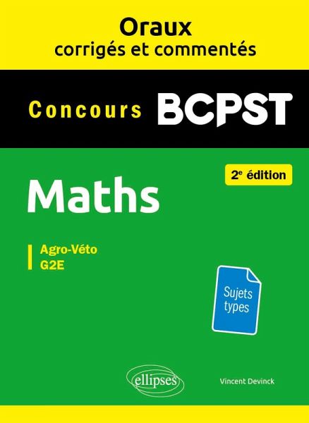 L'étudiant de BCPST préparant les oraux de mathématiques trouvera dans cet ouvrage une sélection d'exercices représentatifs des sujets donnés aux concours communs Agro-Véto et G2E.