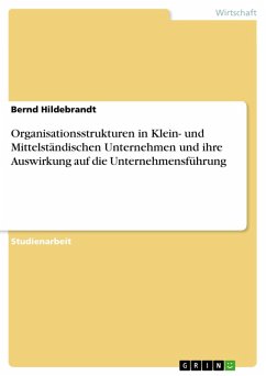 Studienarbeit aus dem Jahr 2010 im Fachbereich BWL - Unternehmensführung, Management, Organisation, FOM Essen, Hochschule für Oekonomie & Management gemeinnützige GmbH, Hochschulleitung Essen früher Fachhochschule, Sprache: Deutsch, Abstract: Organisation (griechisch Organisation: organon = Werkzeug) ist immer dann notwendig, wenn Aufgaben zu bewältigen sind, die nicht von einer Person in einem Schritt erledigt werden können. Ihre Bewältigung verlangt folglich nach Organisation und bedingt eine Herausbildung arbeitsteiliger Leistungssysteme. Organisation bedeutet dann ein Zweifaches: Erstens, die Aufgaben geeignet aufzuteilen und zweitens, die Einzelaktivitäten zusammenzuführen, also die Durchführung der Einzelaktivitäten zu koordinieren. Der Organisationsaufgabe, vor allem in klein- und mittelständischen Unternehmen, wird heute oft nur eine geringe Bedeutung zugeordnet.1 Diese Auffassung veränderte sich allmählich in den letzten Jahren durch Veränderung der Gestaltungsbedingungen. Die Hypothese, dass für das Management in klein- und mittelständischen Unternehmen andere betriebswirtschaftliche Prinzipien heranzuziehen sind als in Großbetrieben, lässt sich treffend mit dem Satz zusammenfassen: "A small business is not a little big business".2 [...] 1 Vgl. Die Beschreibung der "Organisationslücke" in Schauf, M. (2006), S. 224. 2 Vgl. Welsh, J.A.; White, J.F. (1980), S. 18-32.