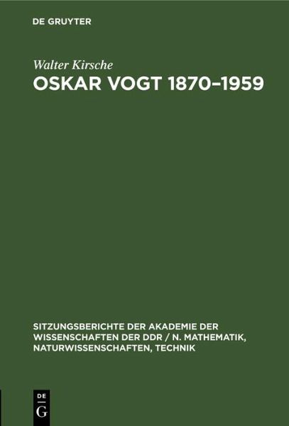 Keine ausführliche Beschreibung für "Oskar Vogt 1870-1959" verfügbar.