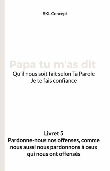 Notre présent est la conséquence de l'emprise de ce que nous avons laissé hier dans nos pensées. Notre avenir est fortement influencé par nos pensées d'aujourd'hui, véritable champ de bataille qu'il faut surveiller avec une attention particulière. Les mots que nous sortons de nous le reflet de nos pensées manifestées par l'accumulation des actions qui forme petit à petit notre personnalité et la vie que nous menons. La série de 7 livrets "Papa m'as dit" est un rappel, un antivirus pour se débarrasser des flux des mauvaises pensées incessantes. Une sélection des paroles qui influenceront nos pensées, nos mots, nos actions, nos habitudes, notre personnalité pour un bien-être de paix, une vie de qualité avec une autre perspective et un avenir plus radieux. Nous sommes ce que nous faisons en répétition.