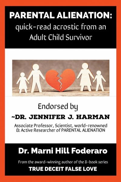 Dr. Marni Hill Foderaro, loving mother of two wonderful grown children, is both an Adult Child Survivor and severely Targeted Mom of Parental Alienation. She is also an award-winning educator and the best-selling author of the prominently-endorsed 8-book series: "True Deceit False Love" which creatively addresses and provides tools, terminology and resources for understanding and healing from Parental Alienation and the Intergenerational Family Trauma that comes with surviving familial/marital Domestic Violence and Narcissistic Abuse. Her latest book: "PARENTAL ALIENATION: quick-read acrostic from an Adult Child Survivor," endorsed by Dr. Jennifer J. Harman, Associate Professor, Scientist, world-renowned and Active Researcher of Parental Alienation, gives a concise overview of how children are weaponized and brainwashed by the Pathogenic, Character-Disordered Parent to reject, fear, hate and cut off their Loving, Normal-Range, Targeted Parent. Marni earned her doctorate in education from Northern Illinois University and completed postdoctoral studies at Harvard during a very successful and rewarding 35-year career as a high school special education teacher, with 12 years as a university graduate school adjunct professor. Marni's life was forever changed after experiencing numerous trauma-induced STEs-Spiritually Transformative Encounters. Her 2022 Hollywood Book Fest runner-up, 2020 Best Books finalist Award Winning and 5-Star Reader's Favorite Spiritual fiction, inspired by true events: "God Came To My Garage Sale" is prominently endorsed by James Redfield, best selling author of "The Celestine Prophecy" series of books and other notables in the Spiritual community, including founding directors of IANDS-International Association for Near Death Studies. In addition to her TV/podcast interviews, speaking engagements and various writing endeavors, Marni is a contributing author to numerous anthology books. In 2022 Dr. Marni Hill Foderaro was inducted into the Bestselling Authors International (BAI) Organization. Marni was born in the South, raised her children in the Midwest and lives in the Caribbean. She is a lover of animals, nature, music and world travel who handles life's challenges with love, compassion, forgiveness and positivity. She values honesty, integrity, equality and goodness and prays for peace on earth and understanding within our families. Marni believes that truth eventually prevails over lies, and that no Young/Adult Child deserves to experience the extreme Abuse of Parental Alienation.