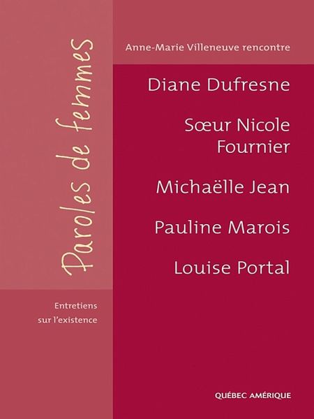 Pendant féminin du livre Paroles d'hommes du journaliste Mathias Brunet, Paroles de femmes donne à lire les réflexions sur l'existence de cinq femmes exceptionnelles : la chanteuse Diane Dufresne, la religieuse Nicole Fournier, l'animatrice et lectrice de nouvelles Michaëlle Jean, la femme politique Pauline Marois et la comédienne et écrivaine Louise Portal. C'est avec beaucoup de sincérité et de générosité qu'elles ont partagé leur vision du monde avec Anne-Marie Villeneuve, éditrice à Québec Amérique. Croyez-vous que chaque individu a le devoir de trouver sa vocation ? Vous trouvez-vous douée pour le bonheur ? Peut-on se préparer à la souffrance ? Avez-vous déjà regretté d'être née femme ? Y a-t-il des choses qui vous révoltent actuellement dans notre société ? Voilà un aperçu du type de questions qui ont été posées à nos cinq personnalités publiques. Des questions qui demandent temps et réflexion, mais ô combien nécessaires pour faire le point sur le chemin parcouru et pour porter un regard philosophique sur l'avenir.