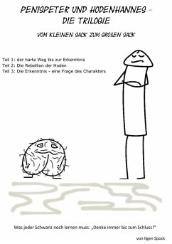 Die Trilogie des Klassikers "Penispeter und Hodenhannes" besteht aus den Teilen: Teil 1 - der harte Weg bis zur Erkenntnis, Teil 2 - Die Rebellion der Hoden und Teil 3 - Die Erkenntnis: eine Frage des Charakters. Diese unterhaltsamen Kurzgeschichten sind das ideale Geschenk für Männer und auch für Frauen. Witzig, unterhaltsam und mit amüsanten Gesprächen, auch in Gedichtform. Erleben Sie den Aufstieg eines kleinen unscheinbaren Sackes. Wie er es schafft sich der Herrschaft seines Schwanzes zu entziehen. Wie er dessen Raffinessen entgeht. Dieser kleine Sack will aber mehr. Er will die anderen Hoden befreien. Die Listigkeit der Penisse wird besser. Sie sind gerissen. Doch Hodenhannes ist unbeirrt. Aber irgendwann ... Hodenhannes ist nicht jeder Falle gewachsen. Wie geht er damit um? Was ist die große Erkenntnis? Erleben sie dieses Werk voller Humor und auch mit kritischer Position gegenüber heutiger Probleme unserer Gesellschaft. Ein Werk mit Spaß und Unterhaltung und dem nötigen Denkanstoß für Menschen, die noch etwas bewegen wollen.