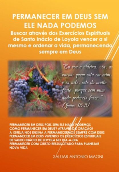 este livro "Permanecer em Deus sem Ele nada podemos". Que tem como Sub Título: "Buscar através dos exercícios Espirituais de Santo Inácio de Loyola vencer a si mesmo e ordenar a vida, permanecendo sempre em Deus". No evangelho de João 15, 1-8, A palavra-chave deste texto é claramente «permanecer», até pelas vezes que é repetida. O «discurso de adeus» de Jesus centra-se, agora, na sua relação com os Apóstolos e sobre a comunhão real e profunda que há entre Ele e os que acreditam nele. Enquanto o capítulo 14 de João se caracterizava pelo imperativo de «acreditar» em Jesus, agora caracteriza-se pela exigência de permanecer n Ele. Encontramos esta mesma imagem de «permanecer» a propósito da Eucaristia (6, 56). Este «permanecer» deve portanto entender-se em conexão com a Eucaristia. Jesus está para enfrentar a morte. Mas continua a ser, para os seus, fonte de vida e de santidade. Unidos a Ele podem dar muito fruto (15, 6). Ao contrário de Israel, videira infecunda e resistente aos cuidados de Deus (cf. Is 5), Jesus é a videira verdadeira, que produz frutos e corresponde aos cuidados do Pai. Com esta imagem, Jesus quer explicar a surpreendente união vital que oferece aos que nele acreditam, os compromissos que essa união implica e as expectativas de Deus sobre ela. Jesus é o primogénito da nova humanidade em virtude do sacrifício redentor oferecido na cruz. Ele é a cepa santa, isto é, parte do tronco que se encontra debaixo da terra e está ligado às raízes, donde brota a seiva que dá vida aos ramos e que neles produz frutos. Quem permanece unido a Ele, vive e pode dar frutos. Quem produzir frutos será purificado para produzir ainda mais. Esta purificação é realizada pela palavra acolhida no coração. Este texto nos lembra ainda quando Jesus disse: Sem mim, nada podeis fazer... Isso nos humilha porque indica que somos inúteis sem Cristo. Em outras palavras, você é igual a zero sem Cristo! Porque a frase: Nada podeis fazer... Significa que você não tem utilidade nenhuma. Ou melhor, você e eu também. Somos inúteis sem Cristo. E isso é a pura verdade, simplesmente porque é Jesus que está dizendo. Claro que teremos oração, contemplação e meditação, e especialmente de cura interior. Veremos que cada espiritualidade, ou carisma tem a sua maneira de rezar, uns contemplativamente, outros na leitura orante, mas todos na busca de se encontrar com Deus Criador, Seu filho Salvador e do Espírito Santo orientador e que nos dá ardor para sempre e cada vez mais buscar fazer a vontade de Deus! Pois sem Ele nada podemos, devemos sempre permanecer Nele! Procuramos utilizar como metodologia a espiritualidade Inaciana, contemplativa na ação, segundo o livro dos Exercícios Espirituais de Santo Inácio de Loyola PARA REALIZAR A EXPERIÊNCIA DE ENCONTRO PESSOAL COM JESUS, NO EXERCÍCIO ESPIRITUAL DO DIA-A-DIA O autor saluar antonio magni é leigo da Igreja Católica, formado em administração, economia e possui curso superior de religião pela Arquidiocese de Aparecida. Atualmente é oficial reformado da Aeronáutica. Além do ministério da Palavra é do grupo da Liturgia da Paróquia de São Pedro. orientador e acompanhante dos exercícios espirituais de santo Inácio de Loyola..