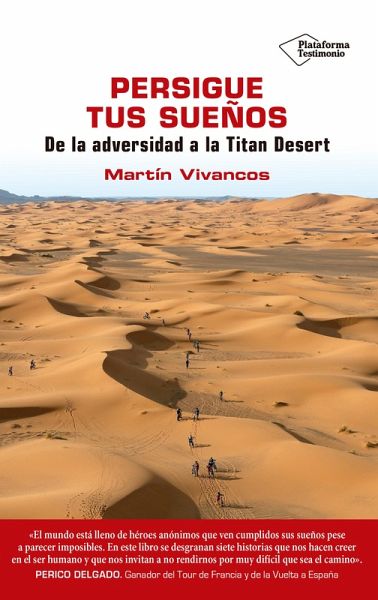 "El mundo está lleno de héroes anónimos que ven cumplidos sus sueños pese a parecer imposibles. En este libro se desgranan siete historias que nos hcen creer en el ser humano y que nos invitan a no rendirnos por muy difícil que sea el camino". PERICO DELGADO. Ganador del Tour de Francia y de la Vuelta a España "Las personas que aparecen en este libro existen. Son hombres y mujeres ejemplares. Solo ellos saben que un día la angustia apareció en sus vidas, y en ese momento aprendieron que al miedo solo se le derrota mirándolo a los ojos. Solo ellos saben el esfuerzo y sacrificio inhumano que deben hacer para ser como los demás. Ellos son los auténticos héroes de la Titan Desert". JUAN PORCAR. Periodista, aventurero y CEO de RPM Racing "Persigue tus sueños es el reflejo del espíritu con el que afronto mis aventuras deportivas. Más allá del esfuerzo que supone encarar estos retos, en ellos siempre encuentro experiencias de superación personal como estas siete historias que nos presenta Martín Vivancos: auténticos jabatos que engrandecen la condición humana". VALENTÍ SANJUAN. Periodista y deportista youtuber "Después de conocer a los protagonistas de este libro voy a proponer a la Real Academia de la Lengua que cambie el significado de imposible. Esta es la definición actual: "Que no puede ser, ocurrir o realizarse". Y esta debería ser la definición correcta: "Que solo puede ser, ocurrir o realizarse por personas que no se rinden jamás". Espero que estas historias os sirvan para que nadie os diga lo que sois, o no sois, capaces de hacer". SANTI MILLÁN. Actor
