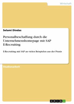 Studienarbeit aus dem Jahr 2009 im Fachbereich Führung und Personal - Recruiting, Note: 1,3, Hochschule Fulda, Sprache: Deutsch, Abstract: Im Rahmen der Veranstaltung "ERP-Systeme" bei Herrn Hoßfeld wurde im nachfolgenden Teil eine Hausarbeit mit dem Thema "Personalbeschaffung durch die Unternehmenshomepage mit SAP E-Recruiting" erstellt. Das Personal stellt für ein Unternehmen die primär wichtigste Leistungserstellung dar, auch wenn wir uns heute in einer konjunkturell schwierigen Zeit befinden. Die Suche nach den besten Köpfen geht weiter. Die richtige Recruiting-Strategie ist Pflicht, um den heutigen Standards der Personalbeschaffung standzuhalten. E-Recruiting, Social Media, Talentpools und E-Assessment Center sind schon lange keine Fremdbegriffe mehr im deutschen Arbeitsmarkt. Große und inzwischen auch 40 Prozent der mittelständischen Unternehmen1 setzen auf E-Recruiting, um an neue Fachkräfte zu kommen. Personalrekrutierung, mit Hilfe der eigenen Website, hat wesentliche Vorteile gegenüber der klassischen Bewerbungsform. Sie erspart in erster Linie Kosten in den Bewerbungsprozessen und verschnellert die Prozedur um ein Vielfaches. Multinationalität ist ein anderes Schlagwort, welches viele Unternehmen dazu führt E-Recruiting einzuführen. Heutzutage ist es üblich, die Ausschreibung von Stellen im Internet und die Abwicklung des Beschaffungsprozesses über dieses Medium abzuwickeln. Das System vom Unternehmen SAP, welches als ein Add-on für das SAP ERP HCM Modul verfügbar ist, nennt sich SAP E-Recruiting2. Das System ist so verbreitet, wie umstritten.