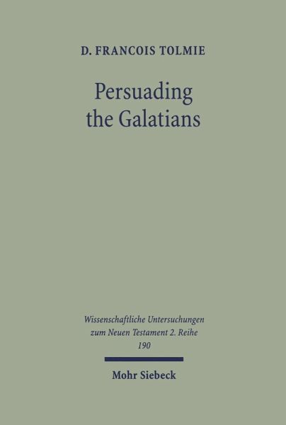 The normal approach to the rhetorical analysis of the Letter to the Galatians is to choose a specific rhetorical model (usually an ancient one) whereby the letter is then analysed. D. Francois Tolmie's study represents an alternative in that the author does not choose a particular rhetorical model to 'apply' to the text. Instead, he follows a text-centred approach in that Paul's rhetorical strategy is carefully reconstructed from the letter itself. The letter is divided into 18 rhetorical phases; the dominant rhetorical strategy in each phase is then identified and described, in conjunction with all the supportive strategies and rhetorical techniques used in the particular phase. Finally, the results of the analysis are integrated in two ways: Firstly, Paul's overall argument in the letter is outlined in terms of six broad objectives that he wishes to achieve by means of the letter. Secondly, the wide variety of arguments that Paul uses in the letter is discussed. Born 1959; 1992 Doctorate in New Testament; 2004 PhD in Greek; currently Professor of New Testament and Head of the Department of Old and New Testament Studies at the Faculty of Theology of the University of the Free State in Bloemfontein (South Africa).