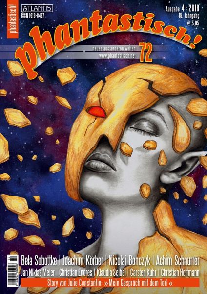 Die PHANTASTISCH! ist eine Zeitschrift für Science Fiction, Fantasy und Horror. Sie erscheint alle 3 Monate neu in gedruckter Form (5,95 EUR) und als PDF-Ausgabe (3,99 EUR). Interviews, Artikel, Rezensionen und vieles mehr bietet sie. Die Ausgabe 72 bietet unter anderem Artikel über die alternativen Welten des Schriftstellers Harry Harrison, das Werk der Comic-Legende Richard Corben, Interviews mit dem Berliner Comic-Künstler Bela Sobottke, dem Schriftsteller Tim Curran, dem Verleger Joachim Körber (Edition Phantasia) und dem Verleger Nicolai Bonczyk (Mantikore Verlag), viele Rezensionen, News und die Kurzgeschichte "Mein Gespräch mit dem Tod" von Julie Constantin.
