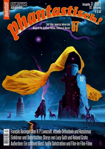 Die PHANTASTISCH! ist eine Zeitschrift für Science Fiction, Fantasy und Horror - randvoll mit Interviews, Artikeln, Rezensionen und vielem mehr auf rund 68 Seiten. Sie erscheint alle 3 Monate neu in gedruckter Form (6,50 EUR) und als PDF-Ausgabe (3,99 EUR). Die Ausgabe 87 bietet unter anderem Interviews mit dem Illustrator François Braranger, dem Herausgeber Michael Schmidt, dem Verleger Michael Steinmann, ferner unter anderem einen Bericht über die Comic-Reihe "Die Unheimliche ", viele Rezensionen, News und die Kurzgeschichten "Die Einhörner" von Lucy Guth und "Dornröschen, schlafe hundert Jahr" von Roland Grohs.