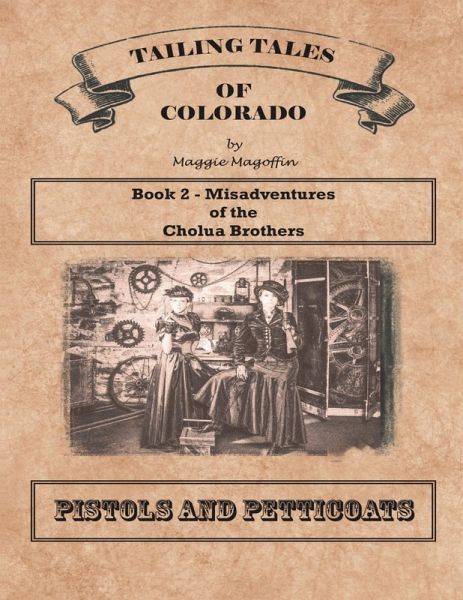 Set during the 1800's gold boom in Gilpin, County, Colorado, the Misadventures of the Cholua Brothers follows Dane and Jake Cholua through hardships, challenges and romance in their never-ending quest to find gold. Implementing historical facts and adding a twist of humor, author Maggie Magoffin brings to life the legendary ancestors of two modern day, coffee slingin' gold miners and their ladies. In Pistols and Petticoats, Book 2 of the series, Victoria Cashman is determined to learn who took the life of Ben Rumson, and why. When her sister, Ruby, shoots a member of the infamous Bummer's Gang, the truth is finally revealed. The ladies surprise everyone with their hidden talents, and win the hearts of Jake and Dane Cholua. Watch for Book 3 - Bonanza Beans Release Date: Fall 2015