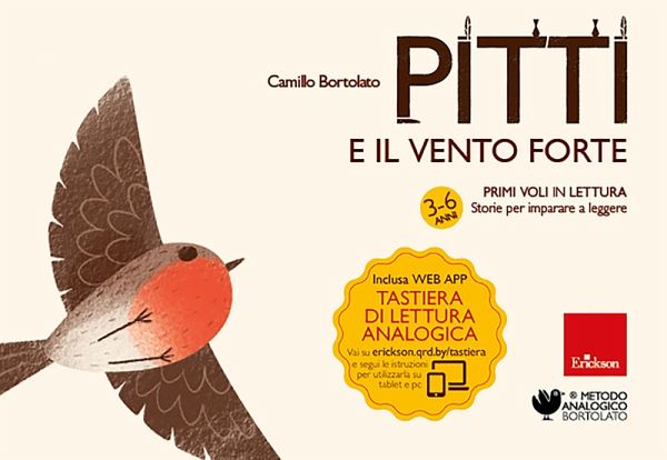 I Primi voli in lettura sono la prima serie di libretti pensati appositamente per permettere ai bambini di leggere da soli fin dalla scuola dell'infanzia. Già a questa età, si avvicinano incuriositi al codice alfabetico e iniziano spontaneamente a leggere le prime parole. Il Metodo Analogico asseconda il loro modo naturale di apprendere, lasciandoli liberi di esplorare il mondo della lingua scritta, senza forzature. Questo è possibile grazie all'uso di lettere gancio, che come delle icone rimandano al suono della lettera (A come altalena, B come balena...) e alle parole suddivise in unità di lettura per guidare la focalizzazione. La striscia dell'abecedario, allegata a ciascun volumetto, presenta tutte le lettere dell'alfabeto in una volta sola, compresi i digrammi e i trigrammi, offrendo uno sguardo dall'alto per non perdersi durante la lettura. La striscia può essere tenuta aperta sopra al libretto per essere consultata al bisogno. Il racconto, caratterizzato da frasi semplici e brevi, è arricchito da illustrazioni coinvolgenti ed emozionanti che accompagnano il bambino una pagina dopo l'altra, fino a quando chiuderà il libro e si scoprirà con stupore capace di leggere. Il cielo si riempie di nuvole. Le chiome si piegano. I rami tremano. La mamma guarda Pitti preoccupata mentre lui si alza in volo. Che cosa succederà a Pitti? Sarà il bambino stesso a scoprirlo, leggendo in autonomia questa breve storia grazie alla striscia dell'abecedario integrata nel libro. La web app Tastiera analogica Oltre alla striscia cartacea, il libro consente l'accesso, e l'utilizzo, alla tastiera analogica per tablet e computer. Ogni bambino potrà così sperimentare un percorso personale di scoperta della lettura digitando direttamente sui tasti brevi parole.