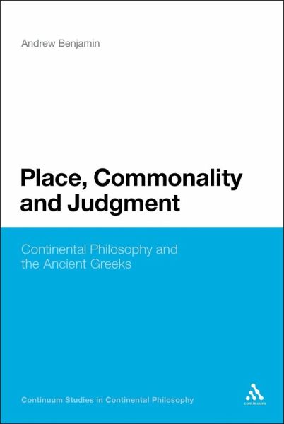 In this important and highly original book, place, commonality and judgment provide the framework within which works central to the Greek philosophical and literary tradition are usefully located and reinterpreted. Greek life, it can be argued, was defined by the interconnection of place, commonality and judgment. Similarly within the Continental philosophical tradition topics such as place, judgment, law and commonality have had a pervasive centrality. Works by Jacques Derrida and Giorgio Agamben amongst others attest to the current exigency of these topics. Yet the ways in which they are interrelated has been barely discussed within the context of Ancient Philosophy. The conjecture of this book is that not only are these terms of genuine philosophical importance in their own right, but they are also central to Ancient Philosophy. Andrew Benjamin ultimately therefore aims to underscore the relevance of Ancient Philosophy for contemporary debates in Continental Philosophy.