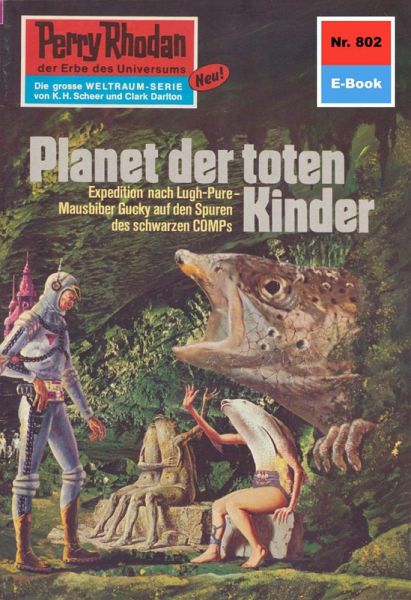 Expedition nach Lugh-Pure - Mausbiber Gucky auf den Spuren des schwarzen COMPs Anfang April des Jahres 3583 ist es soweit! Perry Rhodans SOL, das bisher größte Fernraumschiff der Menschheit, hat eine markante Wegstation seiner langen kosmischen Odyssee erreicht. Die SOL ist in Nypasor-Xon angelangt. Es ist die Galaxis, in der sich das Zentralsystem der Kaiserin von Therm befindet - jener Superintelligenz, deren Entstehung auf ein wahrhaftes "Jahrmillionenereignis" zurückzuführen war. Von Schiffen der Leibwächter eskortiert, nähert sich die SOL dem dritten Planeten der blauen Sonne Yoxa-Sant. Dieser Planet heißt Drackrioch - und auf ihm, so hofft Rhodan, wird er endlich die genauen Positionsdaten der verschwundenen Erde erfahren, die ihm die Kaiserin so lange vorenthalten hat. Dies geschieht auch. Doch bevor die Superintelligenz, die sich den Menschen in Form eines planetenumhüllenden Kristallgespinsts von bizarrer, furchterregender Schönheit präsentiert, die SOL endgültig aus ihrem Bannkreis entlässt, erwartet sie noch Gegenleistungen der Terraner. Eine davon ist die Expedition nach Lugh-Pure, der Nachbarwelt von Drackrioch. Lugh-Pure ist der PLANET DER TOTEN KINDER ...