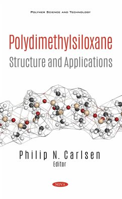 Polydimethylsiloxane is a non-conducting, silicone-based elastomer that is of widespread interest due to its flexibility and ease of micromolding for the rapid prototyping of microdevices and systems. Polydimethylsiloxane: Structure and Applications discusses the results of electric investigations of onion-like carbon (OLC)/polydimethysiloxane composites addressing very wide frequency and temperature ranges. Several kinds of devices for the observation of the behaviour of biological cells are discussed: micro-ridges, micro-grooves, micro-markers, and micro-slits, and the methodology to make each morphology by polydimethylsiloxane is described. The authors reviews the main applications of polydimethylsiloxane in urinary tract devices and the associated complications. As new solutions are needed to reduce bacterial adhesion and biofilm formation on polydimethylsiloxane -based devices, a testing platform is described to evaluate surface performance in both urinary catheters and ureteral stents. Also examined are the properties which make polydimethylsiloxane an excellent candidate for understanding complex biological behaviors, including its transparency for applying optical methods, biocompatibility and nontoxicity, high conformity with cells and other biostructures, gas permeability for the transfer of nutrients and oxygen, and flexibility. In the subsequent study, a hybrid material of titanium dioxide and polydimethylsiloxane is obtained and characterized using a sol-gel and electrospraying method. These results indicate that the hybrid material may be viable as an adsorbent, and that the optimization of the process could reduce both cost and analysis time. In order to further the applications of polydimethylsiloxane, the closing study describes the steps in the fabrication of its plasmonic structure, and also examines the switching effect of the sample.