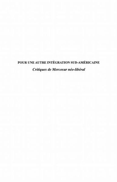 L'etude de l'echec du Mercosur - experience latino-americaine d'integration regionale ouverte - sert a comprendre ce qui pourrait se produire dans d'autres zones (comme en Europe ou en Asie) si la vision liberale du regionalisme ouvert continuait d'etre suivie. L'auteur propose des pistes pour ne pas rester a la merci des fluctuations de l'economie capitaliste mondiale a l'heure de la globalisation financiere et atteindre une regionalisation avec l' homogeneite sociale comme priorite politique.
