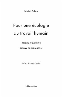 L'emploi s'instaure comme un contenant du travail. Veritable peau sociale du travail et du travailleur, il peut tour a tour l'etoffer ou l'etouffer. Le projet d'une ecologie du travail humain se fonde dans une reconstruction du travail, objet vital et complexe, univers de sens et de l'emploi, univers de l'equite recherchee et de leur entrelacement. Le travail est malade de l'emploi, de nouveaux remedes s'imposent pour supprimer le chomage de longue duree..