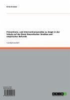 Im Zusammenhang mit dem Thema Schuangst ist im präsenten politischen Meinungsaustausch oft von Schlagworten wie Schulstress, überfüllten Lehrplänen, Numerus Clausus, Leistungs- bzw. Prüfungsangst etc. die Rede. Besonders Letztgenanntes spielt in unserer von Wettbewerb gprägten und leistungsorientierten Gesellschaft zweifellos eine große Rolle. Doch auch auf Angststörungen mit Trennungs- oder sozialer Angst trifft man gerade im jüngeren Schulalter häufig. Die Schulangst mit ihren Folgen - allen voran dem Schulabsentismus- stellt die heutige Gesellschaft vor schwerwiegende Probleme, so verlassen z.B. immer mehr Jugendliche infolge von Lernproblmen die Schule ohne Schulabschluss, wodurch als Konsequenz außerordentliche Folgekosten entstehen, die augenscheinlich in den nächsten Jahren noch zunehmen werden. Darüber hinaus berichten Beratungsstellen von Anzeichen wie Depressionen, Konzentrationsmangel, Schlafstrungen, Übelkeit, Magenschmerzen und Herzklopfen, die sie mit der Schule in Verbindung bringen. In dieser Arbeit wird zunächst einmal der Begriff Angst definiert, um darzustellen welche Gründe zu Angst in der Schule führen und in diesem Kontext die am häufigsten auftretenden Phänomene verschiedener Angststörungen, neben der Schulangst im speziellen, zu erfassen und die Zusammenhänge zwischen ihnen zu beschreiben. Weiterhin werden Theorien und Erklärungsansätze zum Thema Schulangst aufgezeigt und Verfahren zur Angstmessung vorgestellt. Der Fokus liegt schließlich darin, notwendige Möglichkeiten aufzuzeigen, wie insbesondere Einfluss auf Angst in der Schule genommen und reagiert werden kann und nicht zuletzt schon im Vorfeld, z.B. durch angstfreie Erziehung, präventiv vorzugehen wäre, denn gerade in diesem Bereich wird immer noch zu viel über die Erzeugung von Angst gearbeitet. Ziel sollte vielmehr sein Angst zu verringern bzw. Kinder dahin zu erziehen, mit Angst umzugehen und sie zu bewältigen.