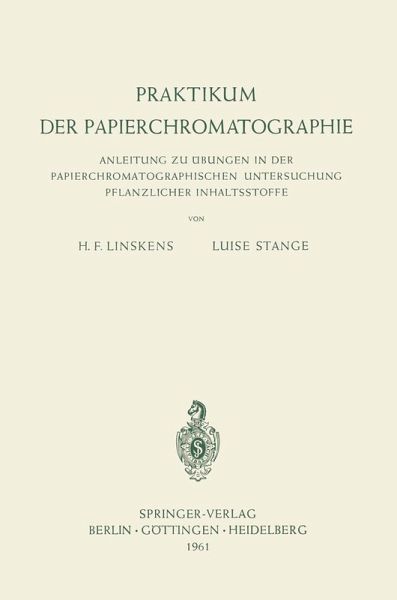 Erste Übung Der Trennprozeß.- A. Beobachtung des Trennvorganges.- B. Einfluß der Papierqualität auf den Trennvorgang.- C. Einfluß des Trennmittels auf die Trennung.- Zweite Übung Eindimensionales Chromatogramm; Einfluß von Zuschnitt und Tempe ratur; quantitative Bestimmung von Aminosäuren.- Arbeitsvorsehrift.- A. Der Einfluß des Papierzuschnittes.- B. Einfluß der Temperatur.- C. Quantitative Bestimmung.- Dritte Übung Zweidimensionales Chromatogramm mit Vergleichssubstanzen.- Arbeitsvorschrift.- Aufgaben.- Literatur.- Vierte Übung Rundfilter-Technik, Zucker.- Arbeitsvorschrift.- Aufgaben.- Literatur.- Fünfte Übung Photogramm-Technik. Nucleinsäuren.- Arbeitsvorschrift.- Aufgaben.- Literatur.- Sechste Übung Extraktion und Hydrolyse.- Arbeitsvorschrift.- Aufgaben.- Literatur.- Siebente Übung Bioautographie, Doppelchromatographie, Wuchsstoffe.- Arbeitsvorschrift.- Aufgaben.- Literatur.- Achte Übung Fluorescenznachweis, Flechtensäuren.- Arbeitsvorschrift.- Aufgabe.- Literatur.- Neunte Übung Farbstofftrennung.- A. Trennung von Chloroplasten-Farbstoffen.- B. Trennung von Chymochromen.- Zehnte Übung Plattentest, Antibiotica.- Arbeitsvorschrift.- Aufgaben.- Literatur.- Elfte Übung Alkaloide.- Arbeitsvorschrift.- Aufgaben.- Literatur.- Zwölfte Übung Autoradiographie.- Arbeitsvorschrift.- Aufgabe.- Literatur.
