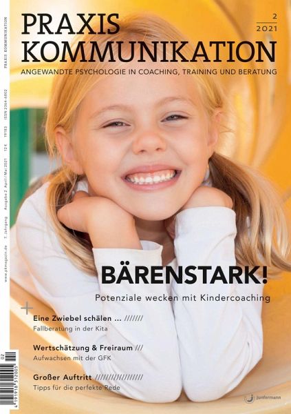 Was ist denn bloß mit diesem Kind los? Traumatisierte Kinder im Coaching - und die Grenze zur Therapie. VON CONSTANZE BOSSEMEYER "Ich bin der, der immer Ärger macht!" Gute Kontaktgestaltung mit Kindern aus dem Autismus-Spektrum. VON JOSEPHIN LORENZ Toll, spitze, superklasse! Auch Loben will gelernt sein. VON RENÉ BORBONUS Kindliche Ressourcen Mit Metaphern und suggestiven Geschichten können Coaches Kindern aus der Verzweiflung helfen. VON PETRA DANNEMEYER Eine Zwiebel schälen ... und den Kern entdecken. Fallberatung als Coaching für Fachkräfte in Kita und Schule. VON BARBARA LEITNER Durch die Augen eines Kindes Spielerisch zum Coachingerfolg mit Kindern. VON UTE EILERT Bananen statt Mord Mit Flüsterpost und kindgerechtem EMDR zum entspannten Einschlafen. VON TANJA KLEIN Erziehst du noch oder bindest du schon? Kindererziehung: Die Lehre über die sechs Hirntypen bietet Anstoß zum Nach- und Umdenken. VON MONIKA M. HOYER Mut zur Wut Magma? Feueratem? Erfahrungsbericht aus einem Wut-Seminar. VON KARIN KIESELE Wertschätzung und Freiraum Wie ist es, gewaltfrei erzogen zu werden? LEA SIKOR im Interview. Wünsch dir was Wie Sie mit dem Visionboard Wünsche und Ziele spielend leicht erreichen. VON ALINE PELZER Der Kopf ist rund Wenn kreative Prozesse ins Stocken geraten, ist vielleicht eine "Schere" aktiv. VON JENS-UWE MEYER Meine Grenzen und das Schwert Sich abzugrenzen ist nicht immer leicht. Gesunde Aggressivität kann helfen. VON KLAUS RENTEL In aller Freundschaft Was bedeutet es, Freunde zu sein? Eine Einladung zum Nachdenken. VON KATJA SCHÖNITZ Keine Angst vorm großen Auftritt Praktische Tipps für erfolgreiche Reden. VON BARBARA LIEBERMEISTER Jubiläum digital Bericht vom CoachCamp Köln. VON SIMONE SCHEINERT MUTivierendes Kindercoaching: Was sollten wir wissen, bevor wir uns darauf einlassen? VON TANJA PETERS Über die Schulter geschaut Das Gespenst - die Auflösung einer verstörenden Erfahrung. VON GABRIELE LÖNNE Business-Symbole einfach zeichnen lernen Verbindung, Lösung, Wendepunkt: Der Knoten. VON JOHANNES SAUER UND AXEL RACHOW