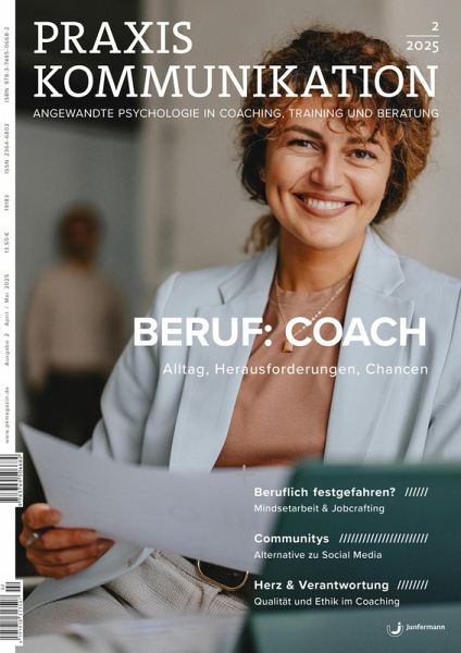 Quo vadis, Coaching? Die Rolle von uns Trainer:innen und Coaches in einer Welt des Umbruchs. VON SUSANNE LAPP Zu nah dran Wenn Klient:innen Coaching mit Freundschaft verwechseln, ist klare Abgrenzung nötig. VON ARNELA PURIC "Von Depression bis Angststörung - ich coache sie alle!" Woran Klient:innen gute Coaches erkennen und was Coaching von Psychotherapie unterscheidet. VON KATHRIN SCHÜTZ Communitys - Gemeinschaft oder Gelddruckmaschine? Ein Netzwerktool fern von Facebook & Co. - was Communitys bewirken und wie man sie gründet und pflegt. VON TANJA KLEIN UND MARCUS JUNGEN Reflexion statt Betriebsblindheit Supervision und Qualitätssicherung im Coaching. VON DANIEL KNABL Von der Sackgasse zum Traumjob Wie Mindsetarbeit und Jobcrafting Veränderung ermöglichen. VON ANDREA LANDSCHOF Substanz bringt Sichtbarkeit Ignoriert "den Algorithmus": Mit Authentizität, Substanz und Tiefe nachhaltig sichtbar werden. VON MATHIAS MAUL Wissen clever nutzen So baust du deine Wissensdatenbank und dein Framework für effizienteres Coaching auf. VON OLAF SCHWANTES Als ich selbst Klientin war Ein Beruf mit Sinn: Mein Weg ins Coaching und warum er sich lohnt. VON JULIA AUGENSTEIN Coaching auf Ressource komm raus! Wie man seine berufl iche Ausrichtung findet und die richtigen Kund:innen anspricht. VON WERNER SIMMERL Mit Herz, Verstand und Hand Wie du deinem Ruf als Coach:in mit Leichtigkeit folgst. VON RUTH MARIA MATTES Coachsulting als Gamechanger Ein innovativer Ansatz vereint die transformative Kraft des Coachings mit der strategischen Präzision des Consultings. VON TATJANA OESTREICHER UND BERNARD IBING Offenheit, Empathie und Respekt Interkulturelles Coaching: eine Schlüsselkompetenz in der globalisierten Welt. VON ALMA DREKOVIC Die Rückkehr der Motivation Innere Kündigung verhindern: Prävention und Handlungsmöglichkeiten mit KI. VON CORNELIA KREHL Adrenalin oder Absicherung? Versteckte Unterschiede zwischen Männern und Frauen und warum sie wichtig sind. VON SHELLE ROSE CHARVET KI-assistiertes Coaching: Ein Framework für die Praxis Der Spagat zwischen Coaching und Administration. VON MIA QUICK Coaching mit Herz und Verantwortung Ein Blick hinter die Kulissen des Traumberufs und auf Herausforderungen und Chancen. VON MARION BREDEBUSCH "Keine deiner Überzeugungen ist wahr" Negative Glaubenssätze mit The Work hinterfragen, damit sie uns wieder loslassen. VON BIRGIT FRANKE