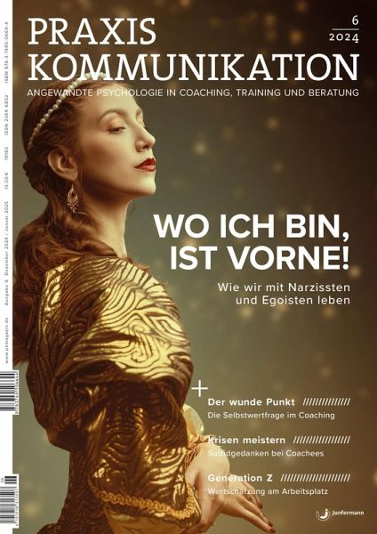 Mikropolitik. Macht. Narzissmus. Stereotype, Insignien der Macht und die Transformation der Arbeitswelt. VON DORIS CORNILS Hinter der Maske Narzissmus in Coaching und Organisationsberatung. VON ALMA DREKOVIC Unrealistische Heilsversprechen Narzisstische Coaches: Wenn Coaching zu einem Selbstzweck wird. VON NICOLE GRÜN Alle herhören! Ich habe was zu sagen! Jeder Mensch hat narzisstische Bedürfnisse. Im Coaching lohnt es sich, diese wertschätzend anzunehmen. VON HORST LEMPART Kann mir mal bitte jemand das Wasser reichen? Narzisst:innen - unbelehrbare Zeitgenoss:innen oder doch nur Menschen wie du und ich? VON ANKE KRAMER Kein Raum für Dialoge Narzisstische Kommunikation und wie wir mit ihr umgehen können. VON LISA HOLTMEIER Der wunde Punkt Die Selbstwertfrage im Coaching. VON CHRISTINE NEUMANN Ohne Narzissmus kein Charisma Warum wir uns als souveräne Vortragsredner:innen ein bisschen mehr selbst lieben sollten. VON THOMAS A. COUCOULIS Eine Welt voller Narzissten? Wie wir uns vor narzisstischen Personen schützen können. VON INGRID GERSTBACH Krisen meistern Depressionen und Suizidgedanken in Coaching und Beratung - und die nötige Selbstfürsorge für Coaches. VON OLAF SCHWANTES "Wo kommen wir denn da hin?!" Wie können sich Arbeitgeber:innen auf die Generation Z einstellen und ein wertschätzendes Klima scha en? VON GESCHE HENTIES Bin ich so in Ordnung? Wenn Grenzen und Bedürfnisse im Wohnumfeld aufeinandertre en. VON LAURA JÄNICKE Erkennen und verstehen, was ist Verdeckte Aufstellungen führen zu tiefen Einsichten verborgener Dynamiken. VON BIRGIT FRANKE Mit dem Leben tanzen Wie Empathie das Leben verändert: Gewaltfreie Kommunikation als Haltung. VON SABINE DIETERLE Entfalte dein Coachingpotenzial Drei Methoden, um Klient:innen mental zu stärken und zu motivieren. VON SHELLE ROSE CHARVET "Das große Wir" als Haltung ANNETTE BAUER und ANNE WERNER sprechen übers Netzwerken. Die Mentoren-Übung Vorbilder können uns helfen, unsere Stärken zu erkennen und zu kultivieren. VON FRANK FUHRMANN Kollegialer Austausch als Intervision Narziss und Ego im Coachingprozess. VON KONSTANTIN BRÜCKMANN UND JELENA DASCHER Einladung zum Perspektivwechsel Wie ChatGPT uns in Konfl ikten bei der Lösungsfi ndung unterstützen kann. VON GERT SCHILLING Einsichten in des Pudels Kern: Das Selbst Spirituelles Gewahrsein kann uns mit unserem Wesenskern verbinden. VON GUDRUN HENNE