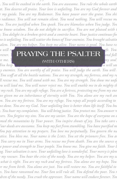 Ever heard Psalms referred to as songs of prayer? Ever tried to pray them verbatim, only to feel thwarted because the audience to whom the Psalm is addressed is not always God and, instead, frequently changes, sometimes within the same Psalm? Praying the Psalter will allow you to pray all 150 Psalms, all in the first person, all directed to God.