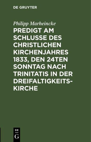 Keine ausführliche Beschreibung für "Predigt am Schlusse des christlichen Kirchenjahres 1833, den 24ten Sonntag nach Trinitatis in der Dreifaltigkeits-Kirche" verfügbar.