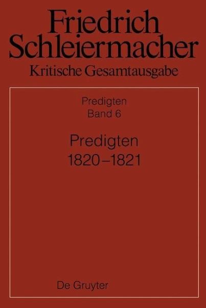 Friedrich Daniel Ernst Schleiermacher (1768 - 1834) was, in Berlin, an eminent preacher, professor, and member of the academy. He displayed an influential theological and philosophical position between enlightenment, German idealism, and romanticism. The historical-critical edition of Schleiermacher's complete works, his unpublished writings and correspondence, published since 1980, has been divided into the following five sections:I. Writings and DraftsII. LecturesIII. SermonsIV. TranslationsV. Correspondence and Biographical Documents The first editorial section, Writings and Drafts, includes all of Schleiermacher's writings which were printed during his lifetime except those which belong to the editorial sections III and IV. It also includes manuscripts either relating to these printed works or to drafts which do not belong to other editorial sections. In 2003, the final two text volumes (vols. 13 and 14) appeared. In 2005, the index volume with some addenda was published. The second editorial section, Lectures, contains all the material regarding Schleiermacher's extentsive lecturing both in Theological and Philosophical Faculties. Additional material is also drawn from notes made in his lecture by his students. (The Berlin Research Centre has been carrying out the editorial work on this section since 1989.) The third section, Sermons, includes all of Schleiermacher's published sermons authorised by himself, as well as his own handwritten drafts and records by listeners where the original text has not been preserved. (The Kiel Research Centre has been working on this section between 2003 and 2017.) This edition of Schleiermacher's sermons consist of a total of 14 volumes of approximately 600 pages each, plus an index volume. The forth section, Translations, has two main components. Schleiermacher translated Hugh Blair's and Joseph Fawcett's sermons (as well as parts of Mungo Park's Travels in the Interior Districts of Africa) from English into German (volumes 1 and 2). Further this sections will contain Schleiermacher's translation of Platon from Greek into German (beginning with volume 3). Section V. includes the letters from and to Schleiermacher, as well as bibliographical documents. The work on this section started in 1979 in the Schleiermacher Research Center Berlin. So far (May 2020), 13 volumes have been published, documenting letters until December 1816.
