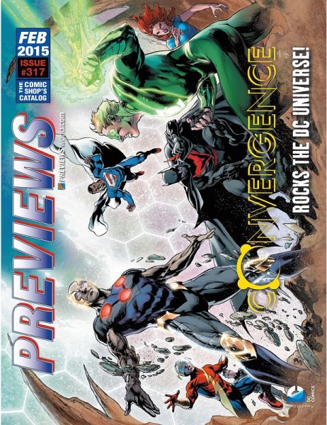 PREVIEWS is your ultimate guide to comics, graphic novels and pop-culture merchandise available from your local comic book shop... revealed up to 2 months in advance! Read product descriptions and storylines for hundreds of English-language comic books and graphic novels from the top comic book publishers; the coolest toys and pop-culture merchandise on Earth; plus PREVIEWS exclusive items you'll find nowhere else! Also contains Marvel PREVIEWS Supplement, filled with descriptions and art for every Marvel title! This February issue features items scheduled to ship in April 2015. Preorder items at your local comic book shop by February 18th. Find a comic shop near you at www.comicshoplocator.com. This Month's Cover Art: DC Comics: Convergence, Dark Horse Comics: Rebels #1