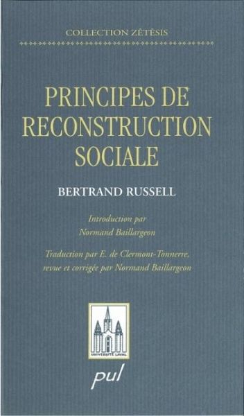 En 1914, Bertrand Russell (1872-1970) a deja accompli une bonne part des travaux de philosophie et de logique mathematique qui feront de lui un des plus importants penseurs du XXe siecle et il jouit d'une exceptionnelle renommee intellectuelle. Mais cette annee-la, horrifie par la folie martiale qui deferle sur le monde, il rompt avec le milieu academique et s'engage dans un combat pacifiste, devenant l'ardent militant qu'il sera jusqu'a sa mort. Mais la philosophie ne sera jamais bien loin pour ce militant. Et c'est ainsi que, en 1916, Russell a donn Londres des confrences dans lesquelles il s'est efforc, d'une part, de comprendre comment nos institutions ont pu nous conduire au dsastre en cours et, d'autre part, d'imaginer de nouvelles institutions - conomiques, politiques, ducatives et familiales - qui pourraient empcher ce dsastre de se reproduire. L'ouvrage tir de ces confrences, Principes de reconstruction sociale, qui n'a rien perdu de sa brlante actualit, est gnralement reconnu comme tant la plus importante contribution de Russell la philosophie politique. Ce document exceptionnel n'tait malheureusement plus disponible aux lecteurs francophones depuis sa premire et unique parution en franais, en 1924. La prsente dition vient combler cette lacune. La traduction en a t entirement revue et corrige par Normand Baillargeon qui signe, en plus d'une substantielle introduction qui situe l'ouvrage dans la vie de Russell et dans son parcours intellectuel, l'appareil critique (notes et bibliographie) de cette nouvelle dition des Principes de reconstruction sociale.