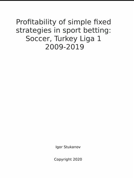 In this book calculations of profitability of fixed strategies in soccer for 2009-2019 Turkey Ligi 1 seasons are presented.