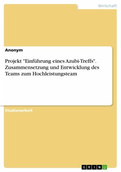 Studienarbeit aus dem Jahr 2018 im Fachbereich BWL - Unternehmensführung, Management, Organisation, Note: 1,3, Hochschule für angewandtes Management GmbH, Sprache: Deutsch, Abstract: In dieser Studienarbeit soll anhand des Projektes "Azubi-Treff" auf die verschiedenen Teamrollen nach Belbin sowie die Entwicklung eines Teams zum Hochleistungsteam in Bezug auf die Teamentwicklungsphasen nach Tuckman eingegangen werden. Zusätzlich soll dargestellt werden, wie ein entsprechendes Kick-Off-Meeting geplant und durchgeführt wird. Außerdem werden mögliche Probleme, die im Zuge einer Teamarbeit auftreten können, genauer beschrieben. "Alle Mann sind an Bord - das Projektschiff legt ab", so heißt es in dem Buch "Der Projekt Kapitän" von Hinz. In diesem Werk wird beschrieben, dass es Aufgabe des Kapitäns und im übertragenen Sinn damit auch Aufgabe eines Projektleiters ist, "das Schiff auf Kurs und die Mannschaft an Bord zu halten", auch dann, wenn es zu Turbulenzen kommt und das Schiff ins Wanken gerät. Den Zusammenhang einer Teamarbeit und einem Schiff erklärt Hinz dadurch, dass die enorme Komplexität eines Schiffes nicht durch eine einzelne Person zu bewältigen ist und es der Hilfe vor allem dem Zusammenwirken mehrerer Personen bedarf. Wie in einem Projekt besteht das Team hier aus Fachleuten, wobei bereits das Fehlen eines Mitglieds enorme Folgen und Probleme mit sich bringen kann. Hinz geht in diesem Zusammenhang auf das Fehlen eines Schiffingenieurs ein, ohne den unter anderem die gesamte Technik an Bord des Schiffes nicht mehr funktionieren würde und somit auch das Erreichen des Zieles gefährdet wird. Sowohl für den Kapitän als auch für den Projektleiter ist für die Erreichung des Bestimmungsortes bzw. des Projektziels "entscheidend, dass der Projektleiter die Ziele richtig formuliert, seine Teammitglieder motiviert, indem er ihnen Sinn und Zusammenhang ihrer Tätigkeiten zeigt, es versteht, die stets vorhandene Gruppendynamik für eine effektive Teamarbeit zu nutzen".