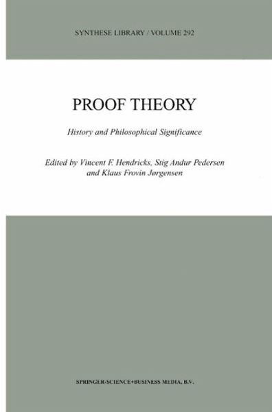 hiS volume in the Synthese Library Series is the result of a conference T held at the University of Roskilde, Denmark, October 31st-November 1st, 1997. The aim was to provide a forum within which philosophers, math ematicians, logicians and historians of mathematics could exchange ideas pertaining to the historical and philosophical development of proof theory. Hence the conference was called Proof Theory: History and Philosophical Significance. To quote from the conference abstract: Proof theory was developed as part of Hilberts Programme. According to Hilberts Programme one could provide mathematics with a firm and se cure foundation by formalizing all of mathematics and subsequently prove consistency of these formal systems by finitistic means. Hence proof theory was developed as a formal tool through which this goal should be fulfilled. It is well known that Hilbert's Programme in its original form was unfeasible mainly due to Gtldel's incompleteness theorems. Additionally it proved impossible to formalize all of mathematics and impossible to even prove the consistency of relatively simple formalized fragments of mathematics by finitistic methods. In spite of these problems, Gentzen showed that by extending Hilbert's proof theory it would be possible to prove the consistency of interesting formal systems, perhaps not by finitis tic methods but still by methods of minimal strength. This generalization of Hilbert's original programme has fueled modern proof theory which is a rich part of mathematical logic with many significant implications for the philosophy of mathematics.