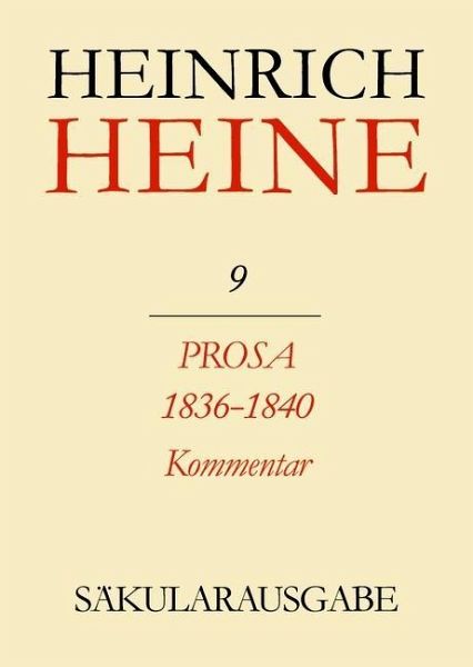 Zu den in den Jahren 1836-1840 publizierten, 1979 in der Säkularausgabe vorgestellten Prosawerken (u. a. ",Florentinische Nächte", ",Der Rabbi von Bacherach", "Elementargeister", "Shakspeares Mädchen und Frauen", "Heinrich Heine über Ludwig Börne") liefert der Kommentarband Entstehungsgeschichten, Überlieferungsangaben und Erläuterungen. Die Abschnitte "Entstehung" und "Mitteilungen zum Text" dokumentieren die Entstehungs- und Druckgeschichten der Texte und die Abweichungen aller handschriftlichen und gedruckten Textzeugen von der gewählten Textgrundlage. Die "Erläuterungen" informieren über historische, literarische, biographische und sprachliche Sachverhalte, soweit sie zum Verständnis der Texte notwendig sind.
