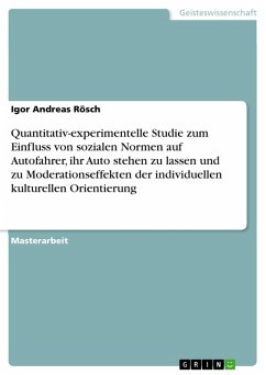 Masterarbeit aus dem Jahr 2021 im Fachbereich Psychologie - Wirtschaftspsychologie, Note: 1,0, FOM Hochschule für Oekonomie & Management gemeinnützige GmbH, München früher Fachhochschule (Hochschulzentrum München), Veranstaltung: Studiengang Wirtschaftspsychologie, Sprache: Deutsch, Abstract: Die in dieser Abschlussarbeit vorgestellte quantitative Querschnittsuntersuchung ermittelt auf Basis von Primärdaten und mithilfe eines kontrollierten Experiments, inwieweit injunktive und deskriptive soziale Normen, wie sie von Cialdini, Reno und Kallgren (1990) konzipiert wurden, über etablierte individualpsychologische Determinanten hinaus die Absicht von Autofahrer*innen beeinflussen, ihr Fahrzeug zugunsten umweltschonender Verkehrsmittel stehen zu lassen. Die Untersuchung verbindet das Normkonzept von Cialdini et al. mit Prädiktoren aus transportpsychologischen Studien zur individuellen Entscheidungsfindung, die auf der empirisch bestätigten Theorie des geplanten Verhaltens von Ajzen (1991) und auf der Normaktivierungstheorie von Schwartz (1977) aufbauen. Erwartet wird, dass dadurch Vorhersagekraft und Varianzaufklärung in Bezug auf die Absicht zur Wahl umweltschonender Verkehrsmittel verbessert werden können. Ferner prüft die Studie, inwieweit die individuelle kulturelle Orientierung, im Sinne der Individualismus-Kollektivismus-Dimension von Hofstede (1980), die Wirkung der sozialen Normen auf diese Absicht moderiert. Die geplante Untersuchung erweitert die transportpsychologische Forschung, indem sie für den deutschsprachigen Raum und unter Berücksichtigung individualpsychologischer Determinanten die Wirkung des Normkonzepts von Cialdini et al. und der Individualismus-Kollektivismus-Dimension auf die Absicht zur Wahl umweltschonender Verkehrsmittel untersucht.