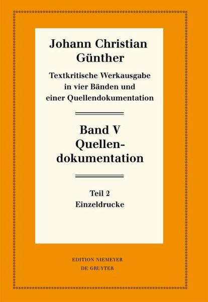 Nach der textkritischen Gesamtausgabe von Günthers Werken in vier Bänden werden die erhaltenen Autographen, Abschriften und Einzeldrucke in den Dokumentenbänden V.1 und V.2 erstmals vollständig abgebildet, um einen anschaulichen Eindruck von den Entwürfen, Reinschriften, Briefen sowie den repräsentativen Festdrucken seiner Dichtungen zu vermitteln, ihre Textvarianten zu belegen, aber auch, um diese seltenen Textzeugen endlich optisch zu konservieren. Denn von den einst 53 nachgewiesenen Einzelhandschriften haben sich bis heute nur 16 erhalten, von den 15 Sammelabschriften blieben nur vier vollständig und drei weitere teilweise verfügbar. Transkriptionen sollen helfen, die zunehmend schwierige Handschrift des Dichters zu entziffern. Bei den Einzeldrucken ist die Überlieferung vollständiger: 35 von ehemals 38 Drucken sind noch vorhanden, meist nur in einem einzigen Exemplar, dem der UB Breslau (Biblioteka Uniwersitecka we Wroclawiu).