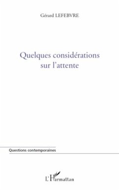 Notre quotidien est crible de fragments d'heure et d'instants infinis pendant lesquels toute notre energie s'epuise ou s'attarde a attendre. Si l'attente est question, alors nous pouvons avec souci du detail et de l'observation nous en approprier quelques-unes. Pourrions-nous vivre sans l'attente ? Pourrions-nous faire abstraction de sa presence ou de son utilite ? Pourrions-nous seulement l'ignorer ou nous en defaire ? L'auteur propose une reflexion sur la notion d'&quote;attente&quote;.