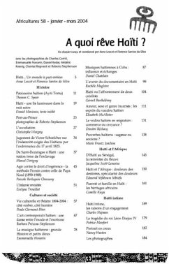 Quelle malediction touche donc ce pays naufrage ? La revolution qui en fit la premiere Republique noire en 1804 l'a-t-elle fait trop rever ? Comment comprendre l'actuel chaos ? Mais aussi, quel foisonnement artistique ! Reponses en mosaique a la lumiere des expressions culturelles haitiennes.
