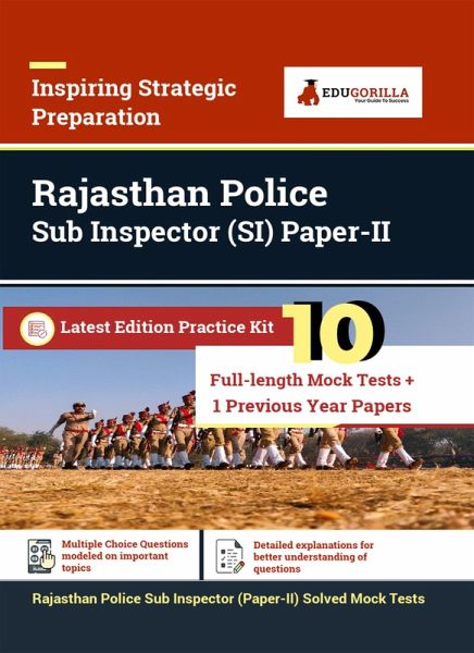 . Best Selling Book in English Edition for Rajasthan Police Sub Inspector (SI) Paper-II Exam with objective-type questions as per the latest syllabus. . Compare your performance with other students using Smart Answer Sheets in EduGorilla's Rajasthan Police Sub Inspector (SI) Paper-II Exam Practice Kit. . Rajasthan Police Sub Inspector (SI) Paper-II Exam Preparation Kit comes with 11 Tests (10 Mock Tests + 1 Previous Year Papers) with the best quality content. . Increase your chances of selection by 14 times. . The Rajasthan Police Sub Inspector (SI) Paper-II Exam Sample Kit is created as per the latest syllabus given by Rajasthan Public Service Commission (RPSC). . Rajasthan Police Sub Inspector (SI) Paper-II Exam Prep Kit comes with well-structured and detailed Solutions of each and every question. Easily Understand the concepts. . Clear exam with good grades using thoroughly Researched Content by experts. . Get Free Access to Unlimited Online Preparation for One Month by reviewing the product. . Raise a query regarding a solution and get it resolved within 24 Hours. Why EduGorilla? . The Trust of 2 Crore+ Students and Teachers. . Covers 1300+ Exams. . Awarded by Youth4Work, Silicon India, LBS Group, etc. . Featured in: The Hindu, India Today, Financial Express, etc. . Multidisciplinary Exam Preparation. . Also provides Online Test Series and Mock Interviews.