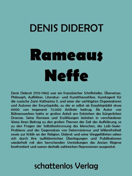 Denis Diderot (1713-1784) war ein französischer Schriftsteller, Übersetzer, Philosoph, Aufklärer, Literatur- und Kunsttheoretiker, Kunstagent für die russische Zarin Katharina II. und einer der wichtigsten Organisatoren und Autoren der Encyclopédie, zu der er selbst als Enzyklopädist etwa 6000 von insgesamt 72.000 Artikeln beitrug. Als Autor von Bühnenwerken hatte er großen Anteil am Entstehen des bürgerlichen Dramas. Seine Romane und Erzählungen leisteten in verschiedener Weise ihren Beitrag zu den großen Themen der Zeit der Aufklärung, so zu den Fragen der Selbstbestimmung des Menschen, des Leib-Seele-Problems und des Gegensatzes von Determinismus und Willensfreiheit sowie zur Kritik an der Religion. Diderot und seine Weggefährten sahen sich durch ihre aufklärerischen Überlegungen und Publikationen wiederholt mit den herrschenden Vorstellungen des Ancien Régime konfrontiert und waren deshalb zahlreichen Repressionen ausgesetzt.