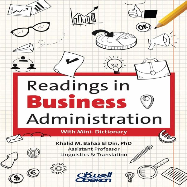 WHO IS THIS BOOK FOR? This book is for students of business administration in Saudi universities. It gives the students the essential language and terminologies of management, business and marketing. This book is also helpful to those working in jobs that prerequisite a background of management and marketing in English. IF YOU ARE STUDYING FOR A CAREER IN MANAGEMENT OR MARKETING The book will help you read and follow the meaning of the passages you read in Arabic. You will learn some of the terminologies of management and marketing and their definitions. The mini-dictionary will give the chance to look up their meanings in Arabic as well. IF YOU ARE ALREADY WORKING IN MANAGEMENT OR MARKETING The book gives you a variety of topics so you have the option either to go through the book on its present order of deal with the topics of your interest. The mini-dictionary and the translation provided of each passage will be of great help if you are working on your own. THE MINI-DICTIONARY The book includes a mini-dictionary at the back of the book. The dictionary contains about 1000 terms. The terminologies included in the dictionary are not confined to those mentioned in the book and thus giving the students a wealth of vocabulary relevant to their career. ¿¿¿¿¿¿¿¿ ¿¿¿¿¿ ¿¿¿¿