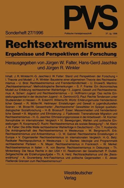 Seit den Wahlerfolgen der rechtsextremen Parteien in Westeuropa und dem zeitweiligen Anstieg rechtsextrem motivierter Gewalt Anfang der neunziger Jahre haben sich Vertreter mehrerer sozialwissenschaftlicher Disziplinen mit unterschiedlichen Forschungsinteressen und Methoden mit dem Gegenstand Rechtsextremismus befaßt. Dieser Band dokumentiert die Bandbreite der neueren sozialwissenschaftlichen Rechtsextremismusforschung und präsentiert Analysen, theoretische Zugänge und empirische Befunde zu zentralen Aspekten der Forschung. Die Aufsätze beschäftigen sich u. a. mit Ansätzen zur Erklärung von Rechtsextremismus, dem Verhältnis von Jugend, Gewalt und Rechtsextremismus, der Bedeutung von Migration und Ethnisierung, mit den rechtsextremen Bewegungen, Parteien und Einstellungen sowie dem rechtsextremen Wahlverhalten in der Bundesrepublik Deutschland und ihren europäischen Nachbarn. "(...) Der sich durch ein hohes wissenschaftliches Niveau auszeichnende Band dürfte bald zu einem Standardwerk der deutschsprachigen Rechtsextremismusforschung werden." Zeitschrift für Politikwissenschaft, 1/97