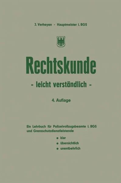 Dem Verfasser dieser Broschüre war daran gelegen, dem Lernenden zu helfen, die Scheu vor dem oft als "trocken" bezeichneten Wissens gebiet der Rechtskunde zu überwinden. Sie bietet deshalb dem Polizeivollzugsbeamten im BGS und dem Grenzschutzdienstleistenden eine solide Grundlage für die recht liche Schulung, die für jeden, der im Bundesgrenzschutz Dienst lei stet, notwendig ist. Auch die nunmehr erschienene 4. neubearbeitete und erweiterte Auflage wird bei den GS-Angehörigen sicherlich eine gute Reso nanz finden; ich wünsche es ihr jedenfalls. (Dr. Ettinger) Brigadegeneral i. BGS Vorwort zur 4. Auflage Die Eigenart der Materie des rechtskundlichen Unterrichts stellt die PolizeivoUzugsbeamten im BGS und die Grenzschutzdienstleistenden oft vor eine schwierige Aufgabe. Diese zu erleichtern und hierzu den Stoff in leichtverständlicher und übersichtlicher Form darzustellen war mein Bemühen. Die dritte Auflage des Buches "Rechtskunde - leicht verständlich" war schneller als erwartet vergriffen. Ich hoffe,' daß sich auch die neue Auflage, die verbessert und durch Ausführungen über weitere Themen ergänzt worden ist, als gute Arbeitsunterlage im rechtskundlichen Unterricht bewähren wird. Es hat sich als praktisch erwiesen, die Rückseiten der Blätter unbe druckt zu lassen. Handschriftliche Notizen ermöglichen eine indivi duelle Gestaltung des Buches. DER VERFASSER Inhaltsübersicht Erster Teil Blatt Begriff des Strafrechts. Die strafbare Handlung 2 Allgemeiner und besonderer Tatbestand 3 Objektiver und subjektiver Tatbestand 4 Die Handlung . 5 Der ursächliche Zusammenhang (Kausalität) 6 Die Schuld.