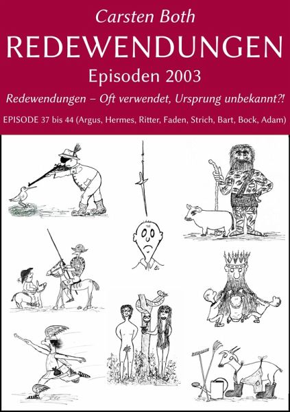 Behandelte Redewendungen: - mit Argusaugen beobachten/bewachen - argusäugig - Argusaugen haben - hermetisch (abriegeln/verschließen) - ein Buch mit sieben Siegeln (sein) - (Der) Ritter (von) der traurigen Gestalt - ein Don Quijote sein - gegen/mit Windmühlen kämpfen - Kampf gegen Windmühlenflügel - ritterlich/Ritterlichkeit - Ritter ohne Furcht und Tadel - Wer wagt es, Rittersmann oder Knapp ...? - Ritterschlag - wie der Reiter/Ritt über den Bodensee - Ritter vom Geist - Ritter der Feder - fadenscheinig - da(von) beißt die Maus keinen Faden ab - an etwas keinen guten Faden lassen - keinen trockenen Faden mehr am Leib haben - nach Strich und Faden - etwas hängt am seidenen/dünnen Faden - das Schwert des Damokles hängt/schwebt über jemandem/jemandes Haupt - ein Damoklesschwert über sich hängen haben - etwas hängt/schwebt wie ein Damoklesschwert über einem - den Faden verlieren - der Faden reißt - Roter Faden - alle Fäden in der Hand (be)halten/haben - alle Fäden laufen in der/einer Hand zusammen - Ariadnefaden - Leitfaden - jemanden auf dem Strich haben - etwas ins Visier nehmen - jemanden abschießen (wollen) - jemanden/etwas aufs Korn nehmen - jemanden/etwas auf dem Korn/auf der Kimme haben - jemanden/etwas auf dem Kieker haben - auf den Strich gehen - Strichmädchen - etwas geht gegen/wider den Strich - jemandem einen (dicken) Strich durch die Rechnung machen - gegen den Strich bürsten - Strich drunter! - einen (dicken) Strich unter etwas machen/ziehen - mit einem Federstrich - einen Schlussstrich unter etwas ziehen - (nur noch) ein Strich in der Landschaft sein - einen Strich (zu viel) haben - keinen Strich (mehr) tun/machen - unterm Strich - unter dem Strich sein/liegen - etwas in den Bart brummen/brummeln/murmeln - jemandem um den Bart gehen - jemandem Honig/Brei um den Bart/Mund/das Maul schmieren - ein Streit um des Kaisers Bart - um des Kaisers Bart streiten - (so) einen Bart haben - über den Löffel barbieren/balbieren - Der Bart ist ab! - Jetzt ist der Bart (aber) ab! - Beim Barte des Propheten (schwören)! - Bei seinem Barte! - geiler Bock - Hurenbock - stur wie ein Bock - Bockbeinigkeit - Bockigkeit/bocken/bockig - (einen) Bock (auf etwas) haben - etwas (nur so) aus Bock machen - keinen Bock (auf etwas) haben - null Bock! - einen/den Bock haben - jemanden stößt der Bock - Bockmist machen/bauen - einen (groben) Bock schießen - etwas verbocken - den Bock zum Gärtner machen - jemanden ins Bockshorn jagen - sich nicht ins Bockshorn jagen lassen - den Bock melken (wollen) - jetzt ist der Bock fett - bei Adam und Eva anfangen - von Adam und Eva stammen - (im) Adamskostüm - (im) Evaskostüm - seit Adams Tagen/Zeiten - der alte Adam - den alten Adam ausziehen/ersäufen - der alte Adam regt sich (wieder) - nach Adam Riese