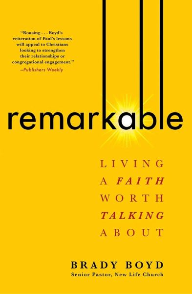 Senior pastor Brady Boyd draws parallels between the early church at Corinth and today's culture to illustrate how Christians can stay true to their beliefs and live a loving and faith-filled life-demonstrating a new way to interact with the modern world. Lead pastor of New Life Church Brady Boyd encourages us to look beyond the archetypical pitfalls Christians historically have fallen victim to: Instigators hold an "us-against-you" outlook towards anyone whose beliefs differ from theirs; Isolators go into holy hiding and choose to associate exclusively with those who think like them; and Integrators slide so seamlessly into the surrounding culture that they become ingrained in it. Instead, in this "rousing" work, Boyd "lays out an approach for Christian readers to live out their faith by using the teachings of Paul" (Publishers Weekly). Through Paul's teachings, Boyd shows us how we can not only learn to hear the Word, but also live it, reclaiming the peace, the freedom, and the joy that we lost by imitating the modern world. Remarkable reminds us that by embracing the vision Paul held for followers of God, we can begin leading truly remarkable lives by letting love guide us every step of the way.