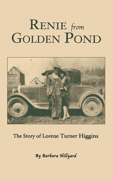 (from the Introduction) Renie from Golden Pond is the true life story of Lorene Turner Higgins. Her story begins with her birth, which was in a log cabin in the Fenton Community, located in Trigg County in what was known as "the land between the rivers." It continues to present time, where she now resides in Cadiz, Kentucky. Lorene, whose pet name is "Renie", married at the young age of fifteen to Lawton Higgins, a seventeen year old moonshiner from the neighboring community of Oak Ridge. Needless to say, the continuing saga unfolds many humorous, heart warming and exciting events. The sweet innocence of the youthful lass depicts the overwhelming emotional trauma she experiences as she copes with being married to a moonshiner; living with her mother-in-law, Ma Annie; after a year of marriage, giving birth to her first child, Virgil, who is deaf; and while he is a baby, having her second child, Doris.