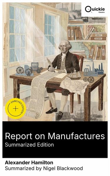 Report on Manufactures is a state paper that fuses economic reasoning with republican statecraft. Written in 1791, it lays out a comprehensive program to accelerate American industry: moderate protective tariffs, targeted bounties and premiums, encouragement of patents and skilled immigration, and federal support for internal improvements. Hamilton defends division of labor, mechanization, and diversification as sources of national wealth and resilience, explicitly countering agrarian exceptionalism. The prose is lawyerly and enumerative, marshalling comparative examples from Britain and continental Europe, and embedding policy within a wider Atlantic debate over commerce and national power. A West Indian immigrant, Revolutionary War aide to Washington, and the new republic's first Treasury Secretary, Hamilton had just established public credit and the national bank when Congress asked for this report. Wartime shortages, exposure to British mercantilism, and a realist concern for security convinced him that manufacturing capacity was essential to independence and prosperity. Readers interested in economic history, political theory, and policy design will find a foundational blueprint here. Whether one embraces or contests its activism, the Report remains indispensable for understanding American state formation, the infant-industry argument, and the origins of a national innovation system. Quickie Classics summarizes timeless works with precision, preserving the author's voice and keeping the prose clear, fast, and readable-distilled, never diluted. Enriched Edition extras: Introduction · Synopsis · Historical Context · Author Biography · Brief Analysis · 4 Reflection Q&As · Editorial Footnotes.
