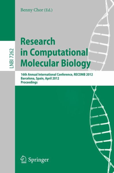 This book constitutes the refereed proceedings of the 16th Annual International Conference on Research in Computational Molecular Biology, RECOMB 2012, held in Barcelona, Spain, in April 2012. The 31 revised full papers presented together with 5 keynote lectures were carefully reviewed and selected from 200 submissions. The papers feature current research in all areas of computational molecular biology, including: molecular sequence analysis; recognition of genes and regulatory elements; molecular evolution; protein structure; structural genomics; analysis of gene expression; biological networks; sequencing and genotyping technologies; drug design; probabilistic and combinatorial algorithms; systems biology; computational proteomics; structural and functional genomics; information systems for computational biology and imaging.