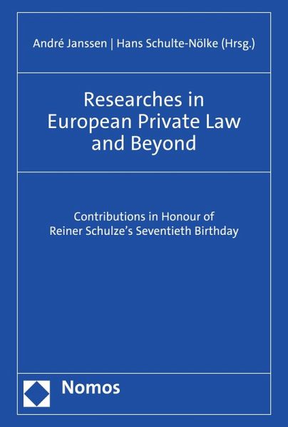 Am 6. Oktober 2018 feierte Reiner Schulze seinen 70. Geburtstag. Mit seiner Erfahrung und seinem Wissen spielte er in den letzten Jahren eine einzigartige Rolle bei der Gestaltung des Europäischen Privatrechts. Einzigartig waren nicht nur die zahlreichen Arbeiten, die er schrieb, sondern auch die große Zahl an persönlichen Beziehungen, die er zu Kollegen auf der ganzen Welt pflegte. Es ist fast kein Tag vergangen, an dem er nicht den Austausch mit diesen gesucht hat, entweder jenseits der deutschen Grenzen oder bei ihm in Münster. Diese Begegnungen resultierten meist in einer oder mehreren der zahlreichen gemeinsamen Veröffentlichungen, die Reiner Schulze mit seiner Energie und seinem Enthusiasmus für seine Forschung inspirierte. Anlässlich seines Geburtstages versammelten sich viele seiner Freunde und Wegbegleiter im Osnabrücker Schloss, um ein besonderes Fest zu feiern, das das Europäische Privatrecht von verschiedenen, aber immer persönlichen Perspektiven beleuchtete. Die Beiträge formten ein breites und komplexes Panorama des Zustandes und der Perspektiven des Europäischen Privatrechts und darüber hinaus. Mit Beiträgen von Salvatore Patti, Matthias Lehmann, Edoardo Ferrante, Dirk Staudenmayer, Geraint Howells, Francesco Paolo Patti, Stefano Delle Monache, Esther Arroyo Amayuelas, Pietro Sirena, Jürgen Basedow, Barbara Pasa, Larry A. DiMatteo, Ulrich Magnus, H.L.E. Verhagen, Gerard-René de Groot, David de Groot, André Janssen, Corjo Jansen, Rafaël Jafferali, Manuel Angel Bermejo Castrillo, Cristina Amato und Elise Poillot
